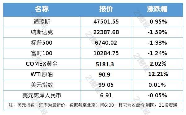 1、好意思股三大指数集体收跌,纳指跌1.59%,本周累跌1.24%;标普500指数跌1.33%,本周累跌2.02%;谈指跌0.95%,本周累跌3.01%。欧洲主要股指集体收跌,德国DAX30指数跌1.21%,本周累跌近7%。